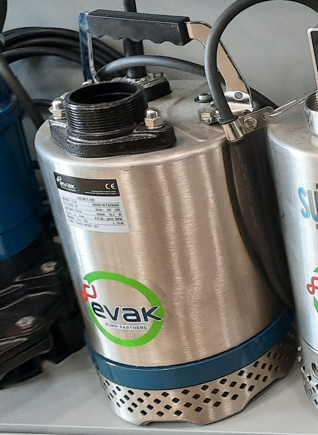 Evak EUB serijos siurbliai pagaminti iš ketaus, plieno ir uretano gumos (Hytrel) – atsparūs dilimui, rūdims ir ilgaamžiai. Evak EUB pumpuojamas skystis gali turėti iki 6 mm skersmens kietųjų priemaišų, todėl šie panardinami siurbliai puikiai pritaikyti naudojimui žemės ūkyje, pramonėje, sodo reikmėms, vandens tiekimui ir purvino vandens pumpavimui iš duobių, baseinų. Evak 50EUB-5.10S drenažiniai siurbliai gali būti panardinami iki 10 m gylyje, o maksimalus kėlimo aukštis siekia 15.2 m. Šis vandens siurblys, sukurtas atsižvelgiant į transportavimo ir sandėliavimo poreikius, sveria vos 15 kg ir yra patogiai naudojamas mažose erdvėse dėl savo kompaktiško dizaino. Evak EUB serijos siurbliai su dvigubo mechaninio sandariklio sistema, dėl kurios mechaninių veleno sandariklių komplektai veikia nepriklausomai vienas nuo kito ir taip užtikriną didesnį patikimumą. Įrenginys komplektuojamas kartu su 10 m kabeliu.