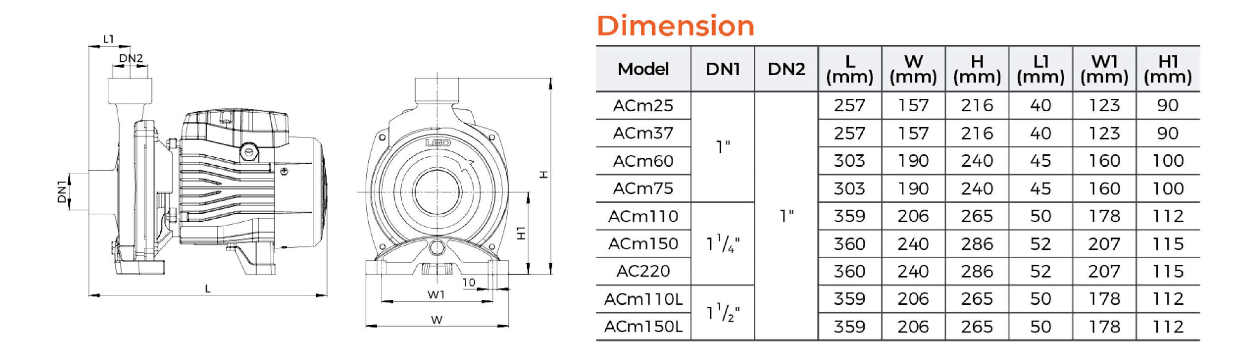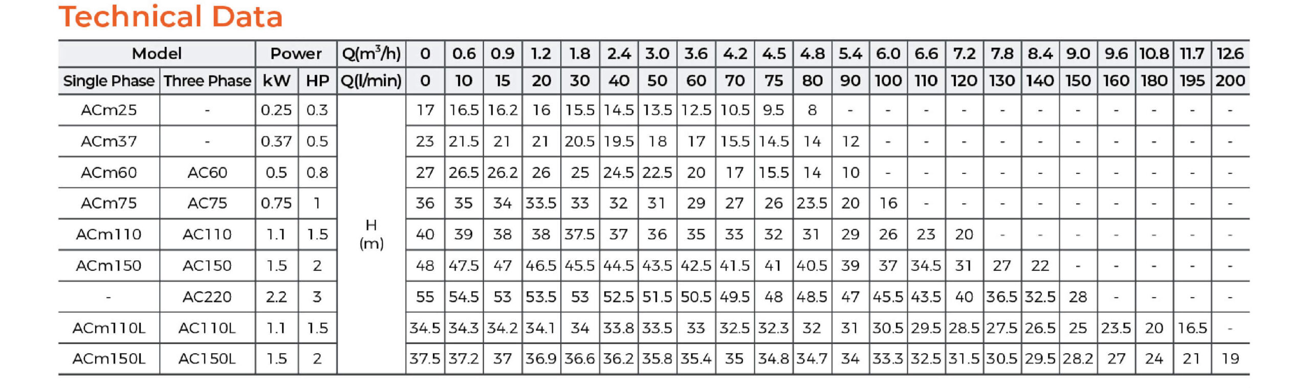 - Maksimalus įsiurbimo aukštis: iki 8 m