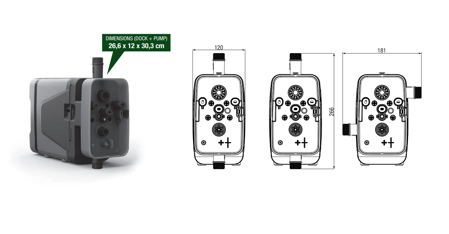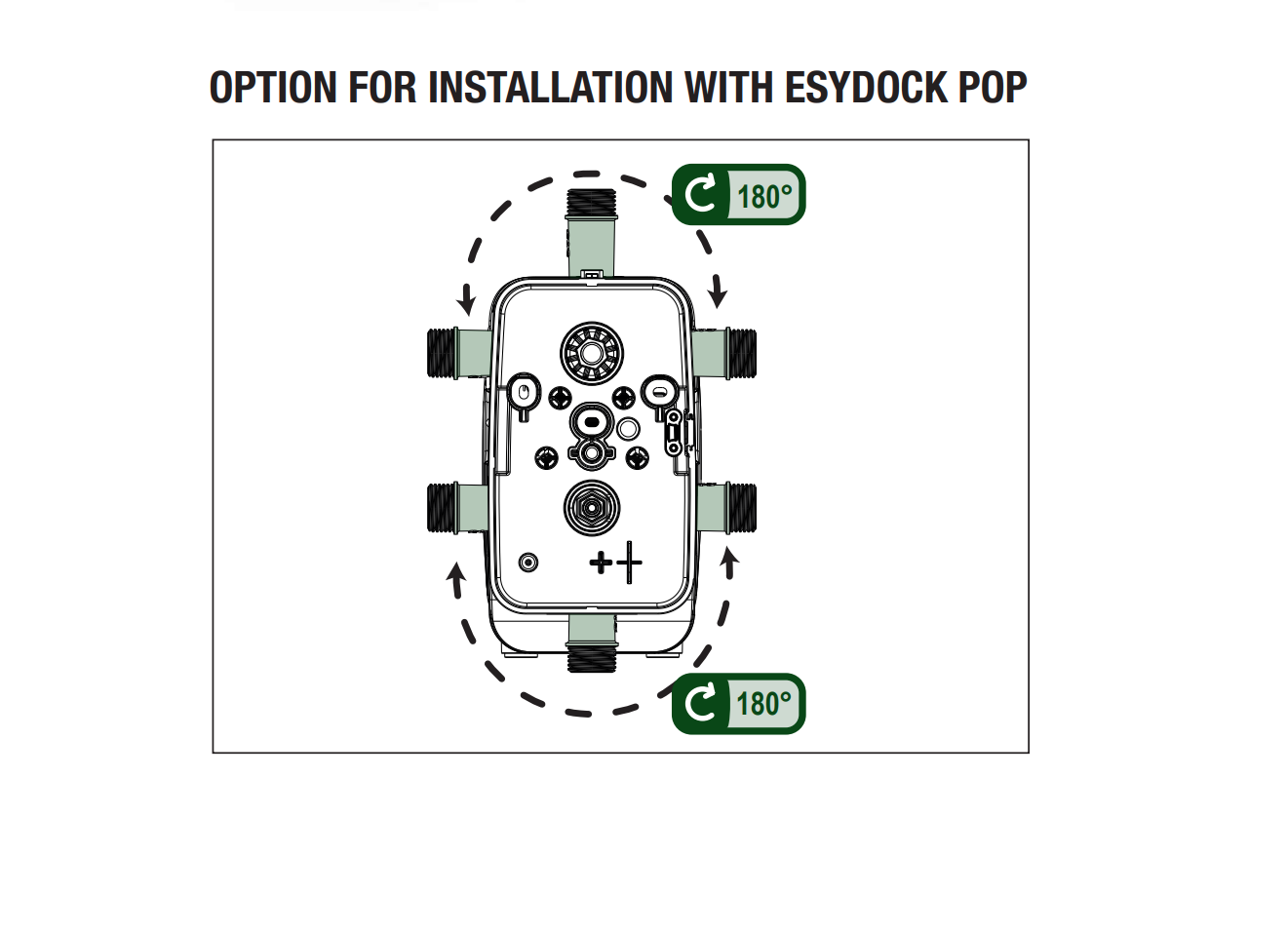 ESYDOCK POP – dėka reguliuojamų jungčių tinka bet kokiai vamzdyno konfigūracijai, todėl montavimas tampa greitesnis, paprastesnis ir lankstesnis. Komplektacijoje yra visos sistemos prijungimui reikalingos jungtys. Taip pat pridedamas sieninis montavimo rinkinys ir apėjimo (bypass) jungtis. Taip pat prieinamas DW versijos variantas su antruoju integruotu slėgio davikliu. Gali būti tiesiogiai prijungiamas prie esamos buitinio vandens tiekimo sistemos, jei tai leidžiama.