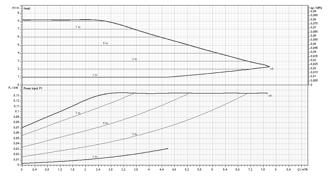 Tėkmės debitas (darbinis diapazonas): nuo 2 m³/h iki 7,8 m³/h