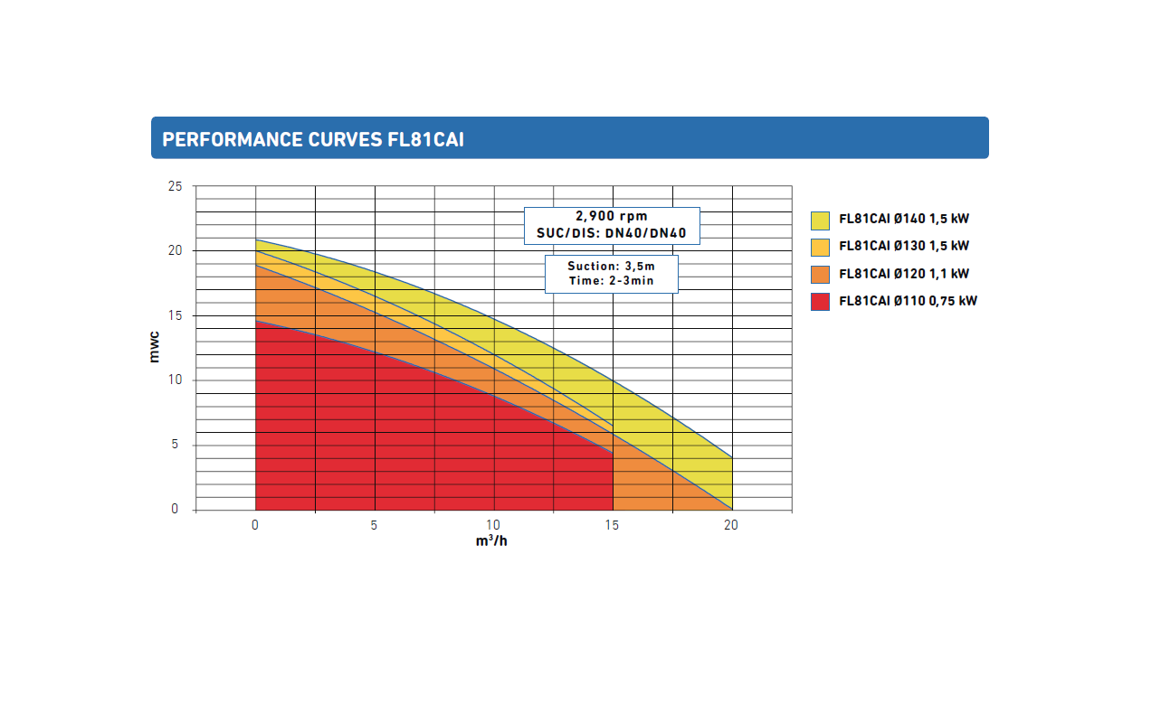 Jo veikimo principas pagrįstas siurbimo kameros išankstiniu pripildymu, kuris užtikrina pakankamą skysčio kiekį siurblio užpildymui paleidimo metu. Priklausomai nuo naudojamo modelio (FL81CAI, FL82CAI arba FL83CAI), produktas gali būti siurbiamas esant -4, -5 arba -6 m aukščio skirtumui.