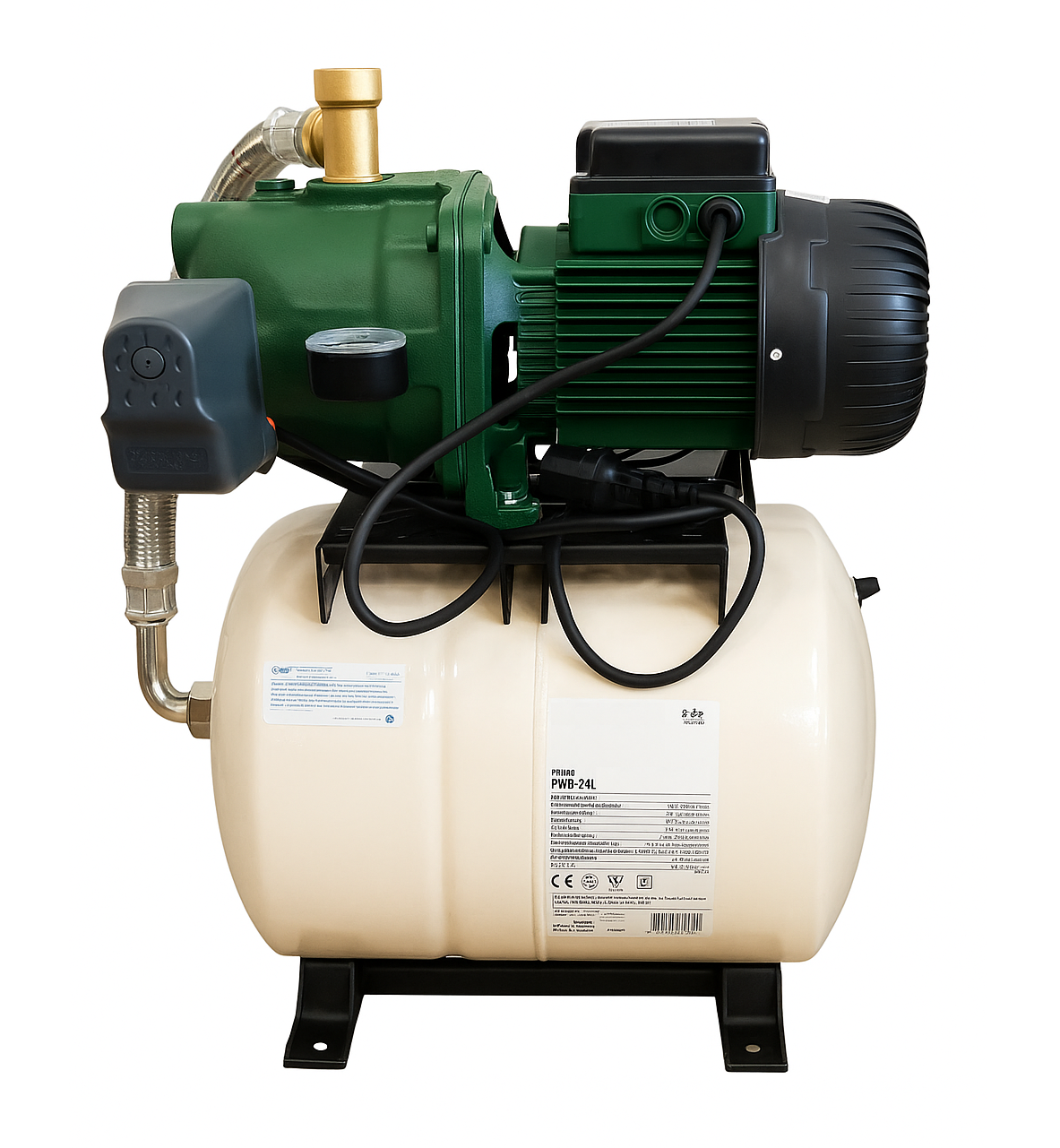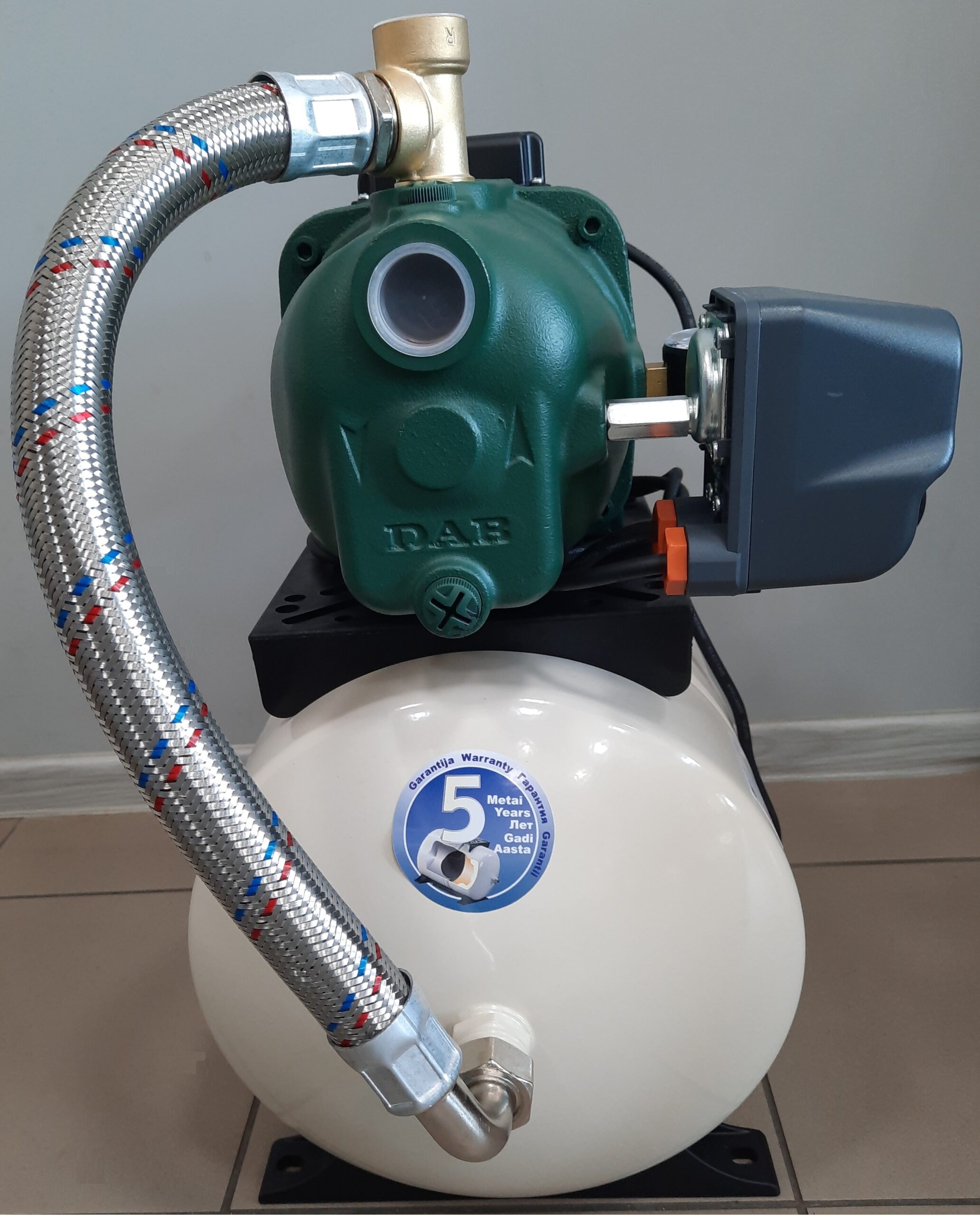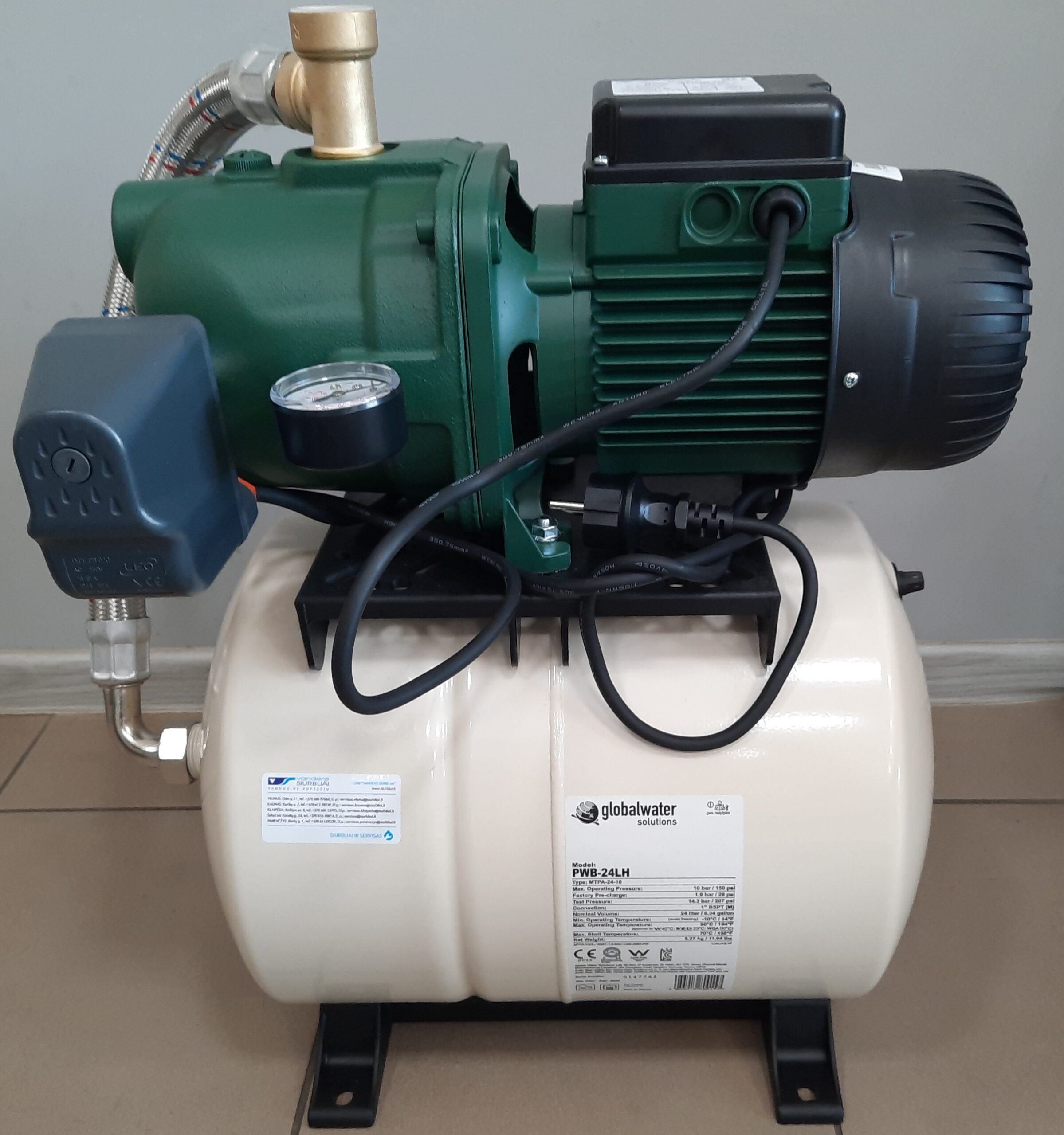 Skirta buitiniam švaraus vandens tiekimui. Sistema veikia naudojant slėgio relę ir hidroforą: pradėjus vartoti vandenį, slėgis bake sumažėja, o slėgio relė automatiškai įjungia siurblį. Pasiekus nustatytą slėgį, siurblys automatiškai išjungiamas. Komplektas, sudarytas iš 24 litrų plėtimosi indo, slėgio relės automatiniam veikimui, manometro, savaime įsiurbiančio elektros siurblio su maitinimo kabeliu ir kištuku. Visi komponentai yra surinkti, išbandyti ir paruošti montavimui.