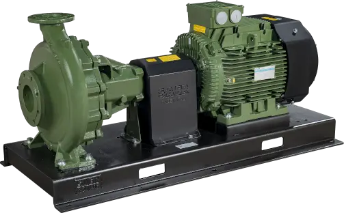 Pilnai sukomplektuotas elektros siurblys su elastinga mova ir pagrindu, su ašiniu įsiurbimu ir siurblio korpusu, kurio matmenys atitinka EN 733 standartą.