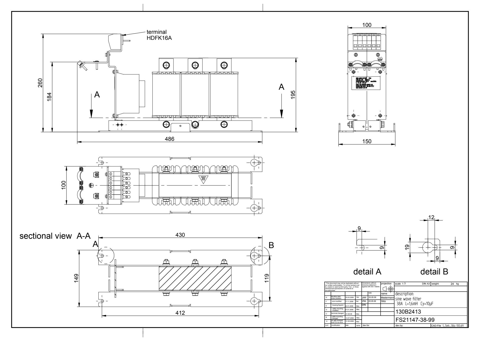 Sinusinis išėjimo filtras Danfoss VLT® serijos dažnio keitikliams FC 100 / FC 300.