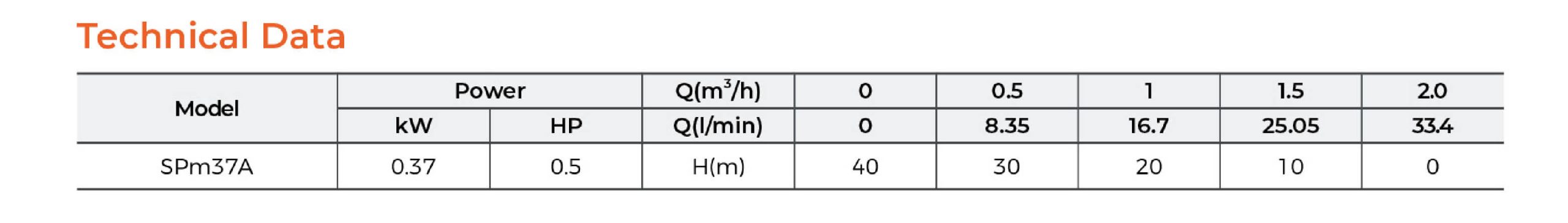LEO SPM vandens siurbliai orientuoti į energinį efektyvumą ir yra itin paprastai naudojami. Šių siurblių siurbiamo skysčio temperatūra gali siekti iki +40 °C. LEO SPM37 serijos vandens siurblių panardinimo gylis – iki 5 m, o maksimalus kėlimo aukštis siekia 40 m, todėl įrenginys idealiai tinka įvairiems vandens pumpavimo darbams. LEO SPM siurbliai valdomi automatiškai – juose integruotas plūdinis jungiklis.