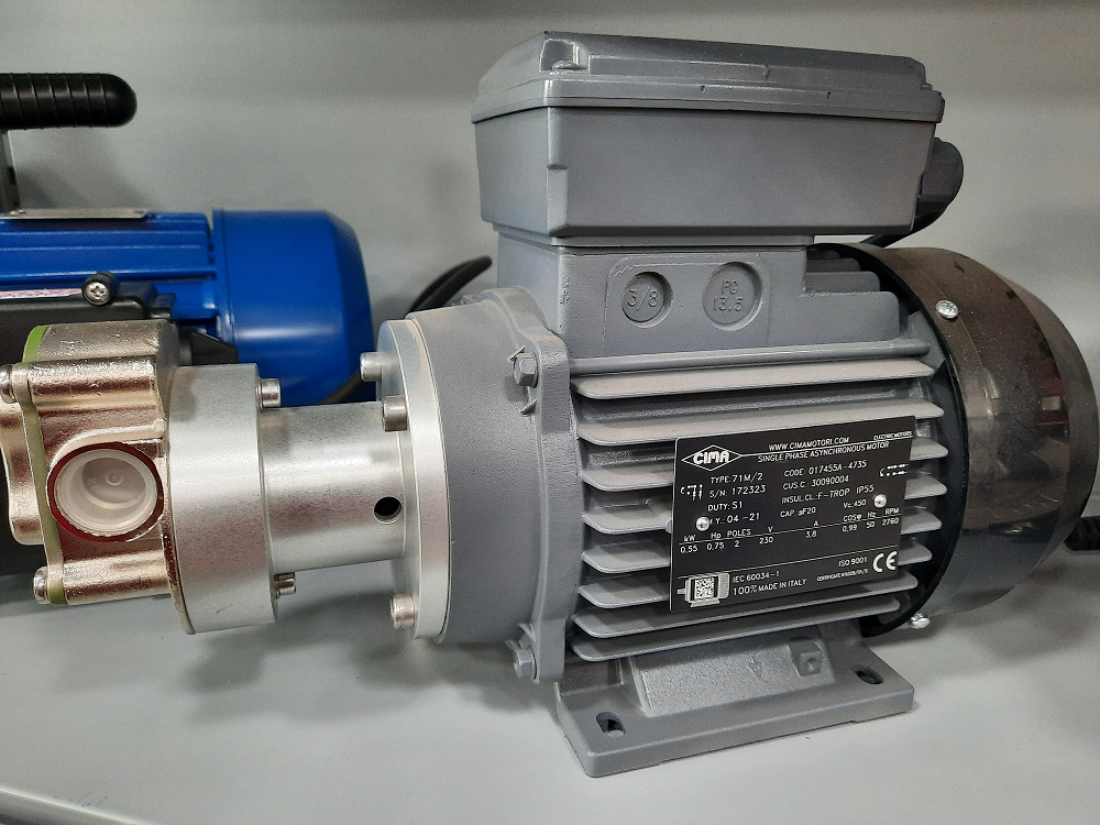 Savisiurbis krumpliaratinis siurblys UP6 / AC 230 V 50 Hz su elektros varikliu, skirtas siurbti dyzelinį kurą ar alyvas. Korpusas žalvarinis, PEEK krumpliaračiai. Velenas – nerūdijančio plieno. Sandarinimas FKM, O-žiedas NBR.